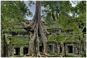 Majestic roots entwine the ancient Ta Prohm temple, a UNESCO World Heritage site in Cambodia.