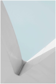 Minimalist architectural structure with a pastel blue sky, highlighting modern design.