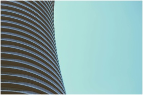 Close-up of a modern curved high-rise building wit