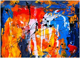 Dynamic abstract painting with vibrant colors, showcasing flowing patterns and expressionist style.