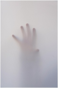 Eerie image of a hand reaching through a foggy surface, evoking mystery and suspense.