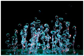 A striking close-up of vibrant water droplets capturing motion and abstract beauty.