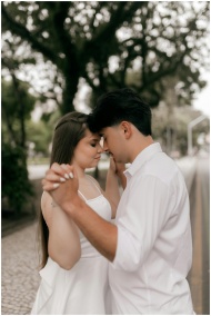 A couple embraces and dances in an outdoor park se