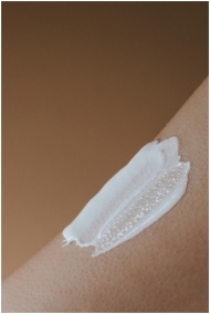 A detailed view of moisturizing cream applied on s