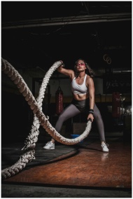 Female athlete demonstrating strength with battle