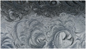 Close-up of detailed frosty patterns on a window,