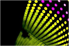 Colorful bokeh light patterns with vibrant yellow and pink hues on a black background.