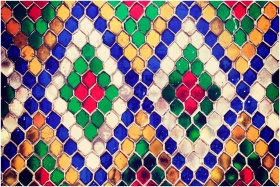 Vibrant mosaic pattern with hexagonal shapes and d