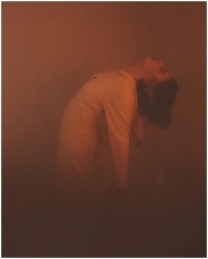Sensual backlit silhouette of woman in fog, creating a moody atmosphere.