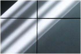 A minimalist image capturing sunlight casting shadows on tiled flooring.