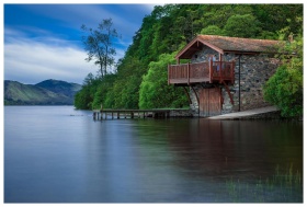 Charming lakefront cabin surrounded by lush greene