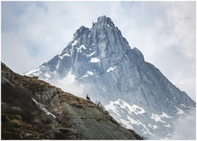 Snow-capped mountain and lone goat in Madonna di C