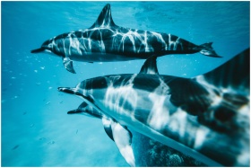 Group of dolphins swimming gracefully underwater i