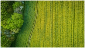 Aerial view of a green field with vibrant textures