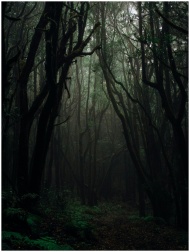 Eerie and atmospheric dark forest with towering trees creating a mysterious ambiance. Perfect for nature photography lovers.