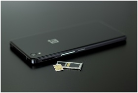 Close-up of a smartphone with a SIM card and memory card, showcasing modern technology.