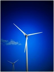 Wind turbines generating clean energy under a brig