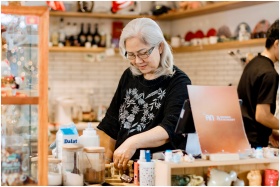 Senior Woman Cozy Cafe