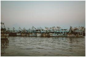 View of fishing boats docked at Ras El-Bar harbor