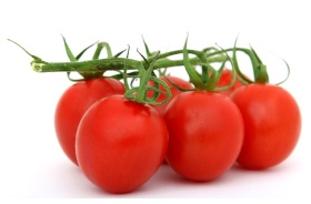 Vivid close-up of fresh cherry tomatoes isolated o