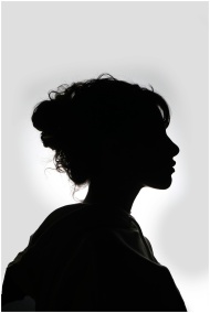 Striking black and white silhouette of a woman in profile, showcasing graceful features.