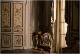 Luxurious interior featuring ornate gold design and classic furniture in a regal setting.