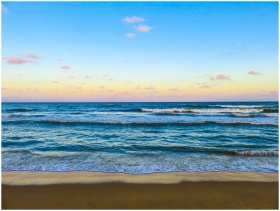 Peaceful ocean waves at sunset, a perfect seascape for relaxation.