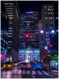 Night view of New York City traffic near Grand Cen
