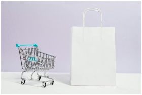 Minimalist image of a white shopping bag and mini