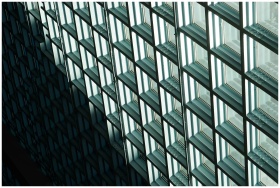 Close-up of a contemporary glass facade showcasing geometric patterns in Seattle.