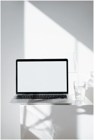 Minimalist workspace with laptop in natural light,