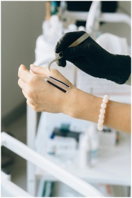 Detailed view of eyelash extension application by