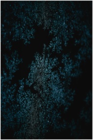 Close-up of frost crystals forming an abstract pattern on a dark background, creating a mysterious and artistic texture.