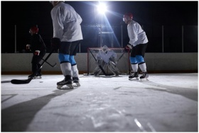 Ice hockey players in action during a night game o