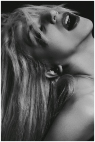 Dramatic black and white close-up portrait of a wo