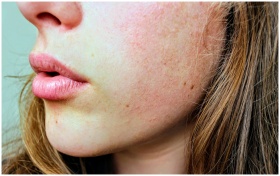 Detailed close-up of a woman's facial skin showing