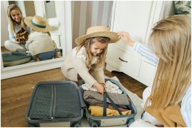 A mother and daughter pack a suitcase for a summer vacation, creating joyful memories.
