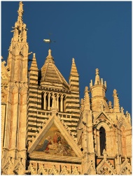 Close-up of the ornate Siena Cathedral facade illu