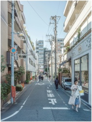 Urban street scene in Meguro, Tokyo depicting dail
