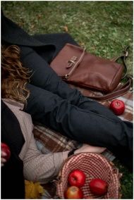 A relaxing outdoor picnic scene with apples, a basket, and a warm blanket in autumn.