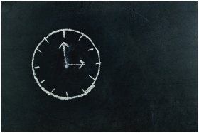 Chalk-drawn clock on a blackboard, symbolizing tim
