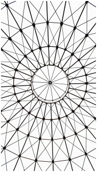 Artistic geometric dome ceiling with intricate lines and patterns in Leipzig, Germany.