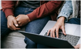 Close-up of two people working together on a lapto