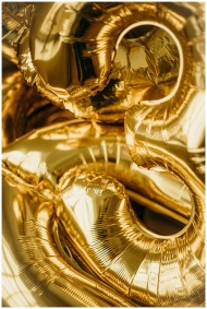 Close-up of metallic gold balloons shaped as numbe