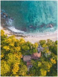 Breathtaking aerial view of palm-lined beach in Dambulla, Sri Lanka with turquoise waters.