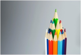 Colorful pencils arranged in a cluster, showcasing