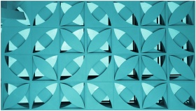 Abstract geometric blue pattern with repetitive square and leaf shapes, ideal for modern backgrounds.