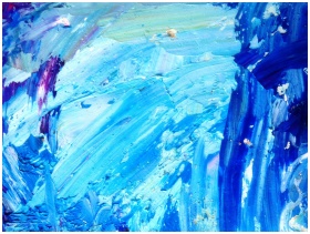 Dynamic abstract art piece with vibrant blue textures and acrylic paint strokes.