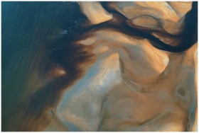 Aerial photograph capturing intricate sand and wat