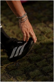 Male athlete adjusting socks before outdoor run on